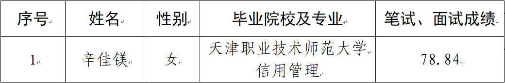 2023-09-03根據(jù)《平?jīng)鍪?023年就業(yè)見習(xí)崗位公告(第四期)》,經(jīng)組織報(bào)名、資格審查、筆試、面試、考察、體檢等程序,擬確定辛佳鎂同志為見習(xí)對(duì)象,現(xiàn)予以公示。一、公示對(duì)象簡(jiǎn)要情況二、公示和受理反映時(shí)間公示時(shí)間:2023年9月4日至9月8日,共5個(gè)工作日受理時(shí)間:每